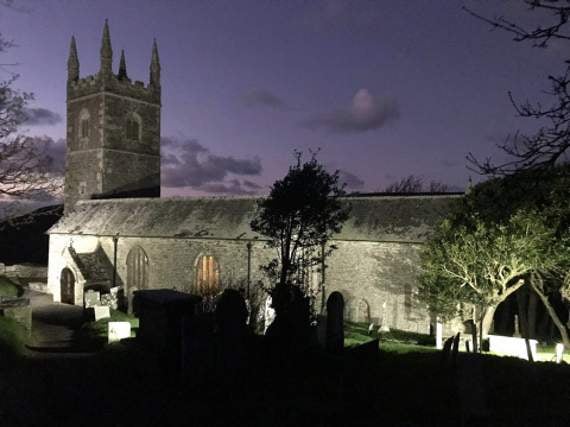 The Church of St Morwenna and St John the Baptist, Morwenstow, was floodlit on Christmas Eve for a special evening carol service.