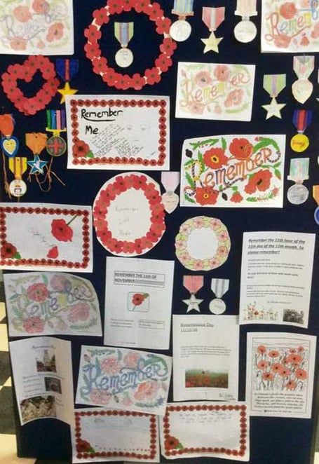RIGHT: One of the displays in the school foyer on Armistice Day.