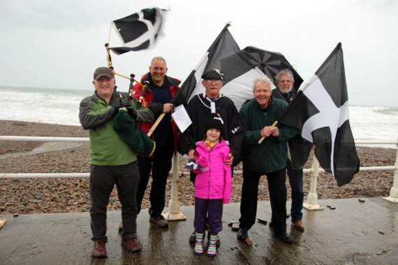 The piper, Bob Price, led the procession with some traditional Cornish music and the iconic ‘Trelawney’ getting spirits high as they made their way to the surf club for warm drinks and saffron cake, which was very well received. Cllr Willingham continued: “It was fantastic that so many people turned out on this wet and blowy day. The Cornish piper sent us off on our march and welcomed our return to the surf club where there was a very welcome hot cup of tea and saffron cake.