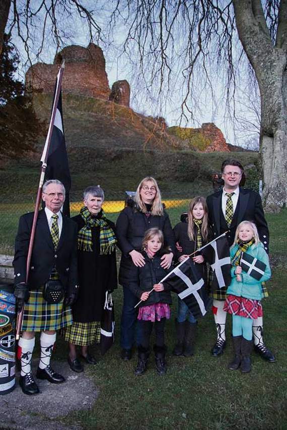 Around 80 people gathered at Launceston Castle Green to celebrate St Piran’s Day on Saturday.