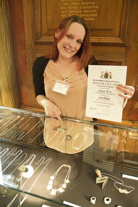 STACEY West, a jewellery and silversmithing student from Stratton, has won first place in the jewellery and fashion category of this year's Pewter Live Student Competition at Pewterer's Hall in London.