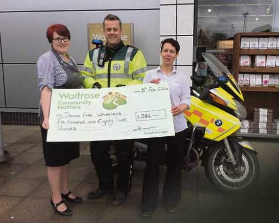 Devon Freewheelers recently received a cheque from Waitrose, Holsworthy for £582, from their community matters project.