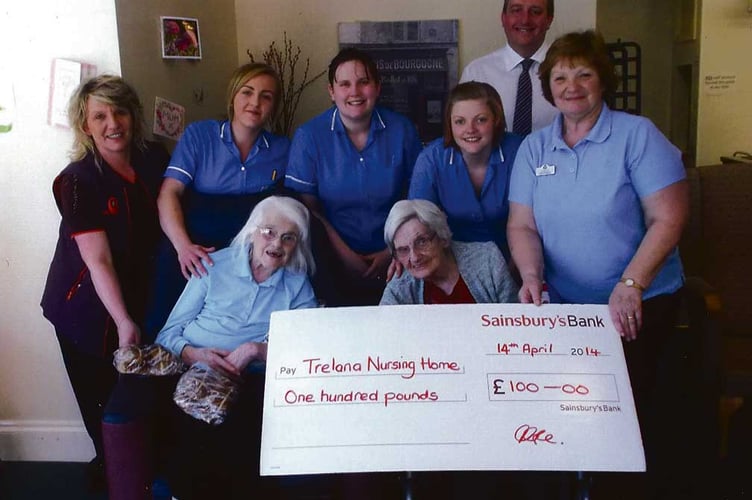 PETER Allen, Bude Sainsbury’s store manager, and Lesley Blake-Bertram, PR ambassador, visited Trelana Nursing Home in Bude recently to present a £100 community grant. The money will be used to develop a patio area for the residents. Hot cross buns were also handed out for an Easter treat. Lesley and Peter are pictured with staff and residents Menna Blake-Bertram, Emma Tozer, Nina Mason, Jan Dickerson, Sylvia Turner and Amy Brooks.
