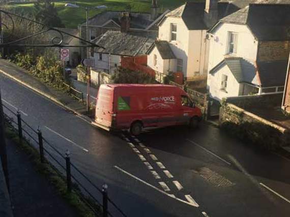 WESTGATE Street was blocked in Launceston for around an hour this afternoon (Tuesday) by the Dunheved Road turn off due to a wedged delivery van.