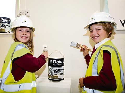 PUPILS, parents and staff at Bridgerule Primary School worked with design and building professionals last week to brighten up the school library and reception area for free.