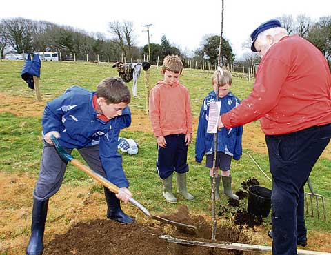 The children got their hands dirty as they joined Mayor of Camelford Mr Rob Rotchell in an enjoyable morning at Jubilee Orchard.