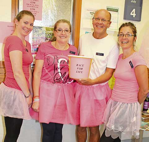 STAFF at NatWest bank in Bude collecting for Cancer Research: Louise Lynam, Sue Chafe, Graham Dunn and Manda Cox.