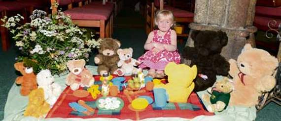 A selection of teddy bears kept a watchful eye on visitors from the football club’s display of ‘Teddy Bears’ Picnic’, and visitors were particularly attracted to a gaily decorated bicycle, made for two, for ‘Daisy, Daisy’, courtesy of the community centre.