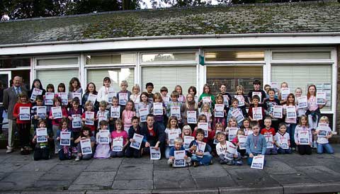 During the recent school summer holiday, Holsworthy Library has been holding a number of themed events as part of the Space Hop, Summer Reading Challenge. 60 children accompanied by their parents crowded into Holsworthy Library for the presentation of certificates and medals by district and county councillor Barry Parsons. In all 80 children completed the challenge to read at least six books of their own choice during the holiday. After the presentation they gathered outside the library for a photo.