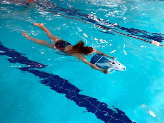 A safety briefing was given and the team had to race the length of the pool being towed behind an underwater chariot. Very few of either of the clubs had used scooters before and every team loved the experience.