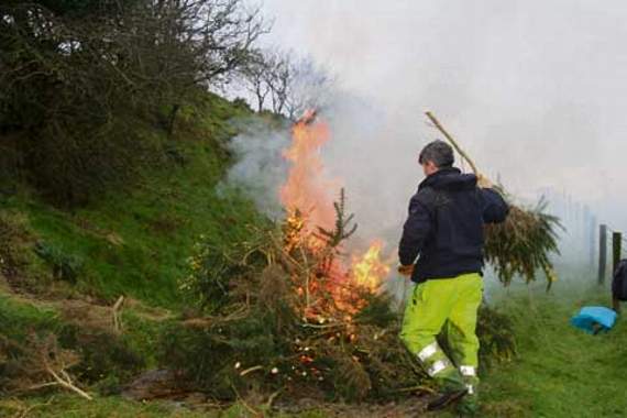 More than a hundred metres of gorse were cut in a morning and burned safely on a bed of corrugated iron.