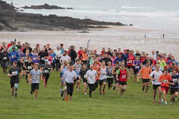 New Talan’s Trust t-shirts were on offer at Bude Surf Club, and with the registration completed and a warm up with David Herman finished, it was time for the runners to take their places at the start line, setting off at 11.30am for the 19k run.