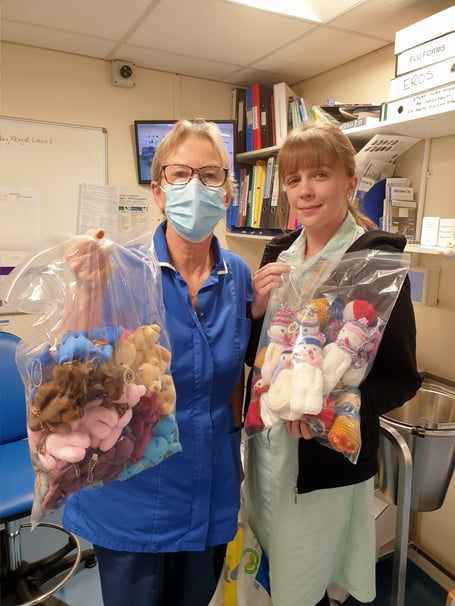 Just in time for Christmas the Launceston Lions Club have donated small teddies, together with small, knitted dolls and teddies to the Minor Injuries Unit at Launceston Hospital.