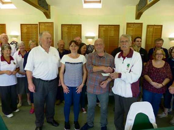 Each of the two winning teams were presented with a cheque for £150 from Holsworthy Bowling Club president Barrie Thomas. This was for their nominated charities Parkinsons UK (Rotary) and Different Strokes (HSC).