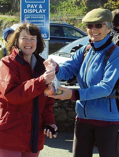 Shelley and Geoff Barratt of Orchard Lodge at Boscastle, were sponsors of the Crackington to Boscastle leg and did their bit to support walkers on Saturday. They handed out bags of snacks and wished them good luck as they climbed the highest point of the Cornish coast path.