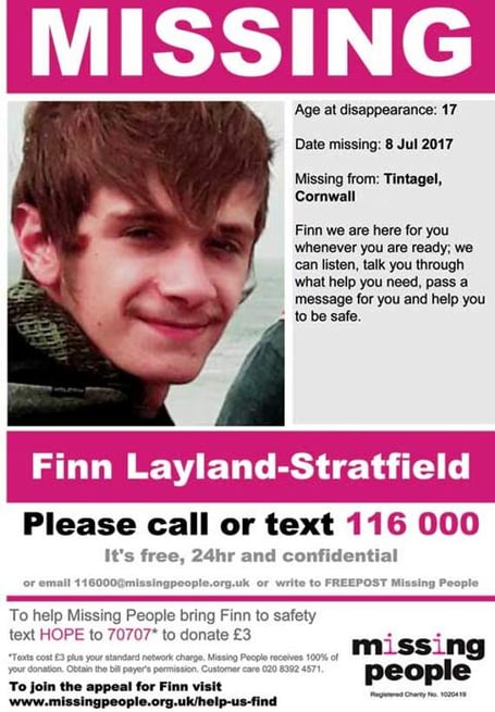 Finn disappeared in July last year, when he was 17-years-old. He was last seen near Tintagel.
