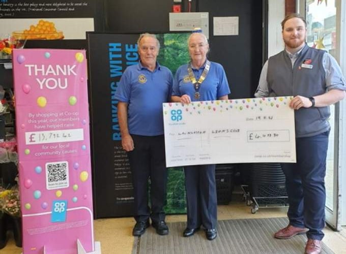 AS part of Co-op store’s ‘Celebration Day’, Launceston Lions were presented with a cheque for £4,498.80 from the Co-op Local Community Fund.