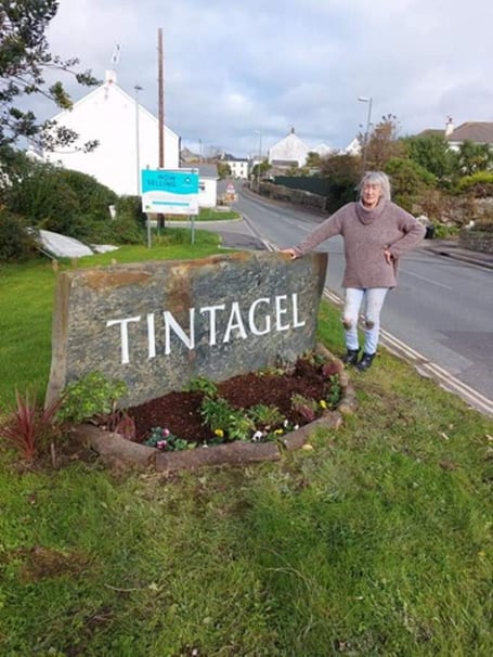 The group planted several flowers in the bed next to the slate Tintagel sign in the village, including tulips, daffodils, crocus and also pansies and Heathers.