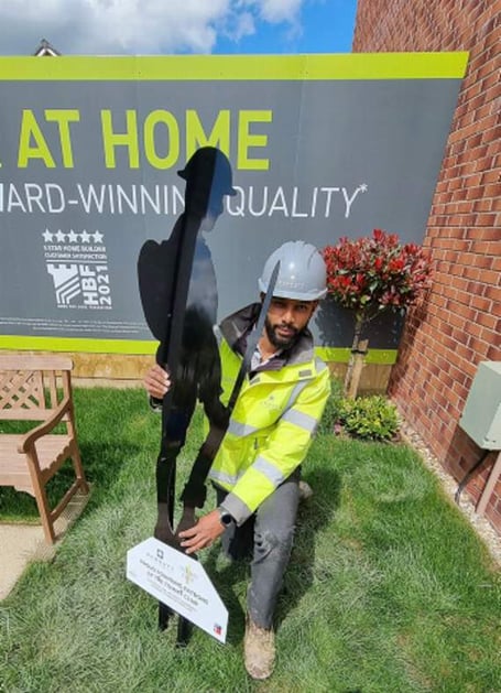 Assistant site manager and former Army Medic Joshua Ceesay, who is managing the construction at Chapel Gate, Launceston, says it’s a great honour to install the figure in the show home garden and in dozens of others across the South West.