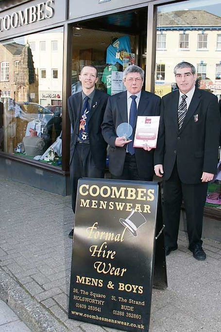 Coombes Menswear the long established Menswear Retailer with branches in Bude and Holsworthy and who specialise in Men's and Boys' Formal Hire Wear, have won the top Westcountry Wedding Awards trophy in the category Best Men's Outfitter for 2010, which covers both Devon and Cornwall.