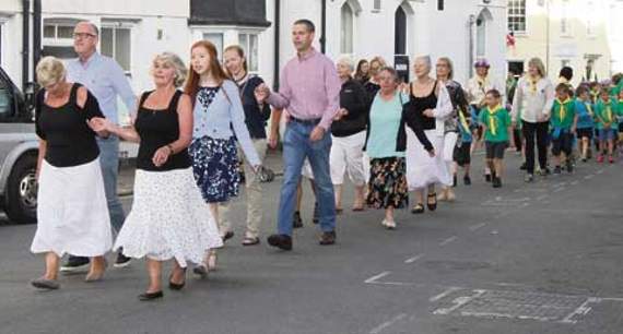 The dance was led by the town band, which provided an excellent accompanying set of music. At the head of the dance were members of HATS, the Portreeve John Addicott and Pretty Maid Alice Banks.