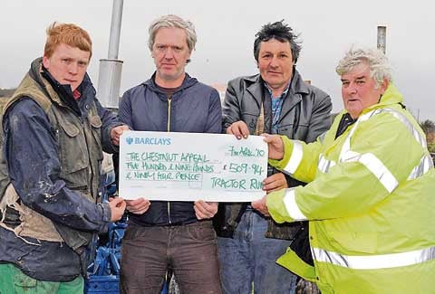 A cheque for the grand total of £509.94 has been presented to the Chestnut Appeal for prostate cancer, based at Derriford Hospital, Plymouth, are members of the tractor run. The tractor run saw around 45 tractor drivers take part in the event which was completed at Pennant Farm, St Endellion.