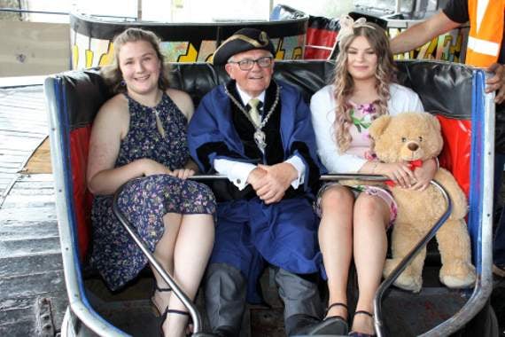 Also taking part in the festivities, Portreeve Robert Painter said he was delighted to have accompanied Harriet and Lizzy on the dodgems and tea-cup ride. “It was exhilarating. When I got off I could barely stand. It was fantastic riding with last year’s Pretty Maid and this year’s Pretty Maid — they really are both wonderful girls.”