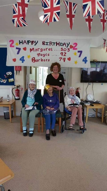 Pictured are the three residents celebrating their birthdays with home manager Diane Keogh.