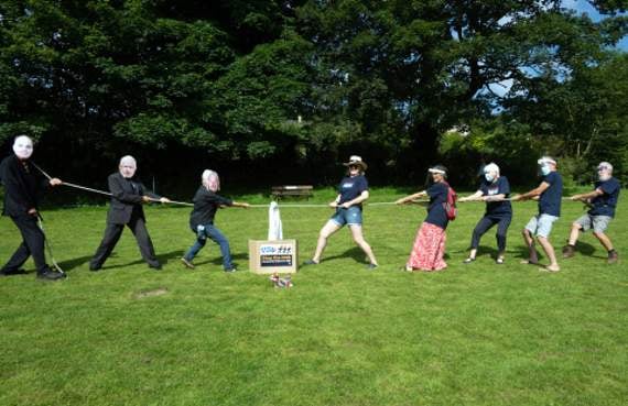 NHS campaigners staged a ‘tug of war’ between private healthcare and patients in Enfield Park, Camelford, on Saturday, July 17.