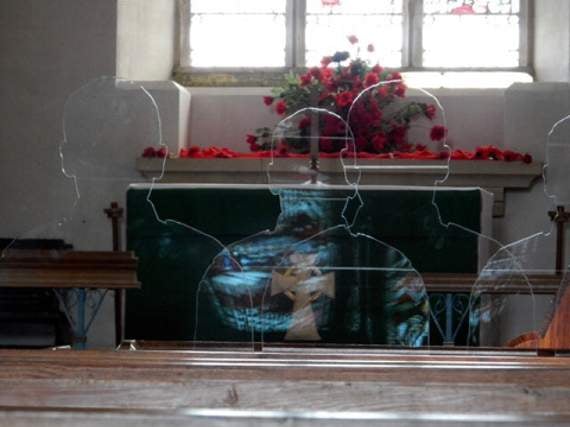 The central feature of the service was the installation of silhouettes, in the form of transparent seated military figures, to represent each of those twelve men.
