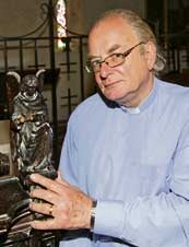 The Rev Michael Parsons by the figure with the sawn-off arms clearly shown. Picture: David Flower.