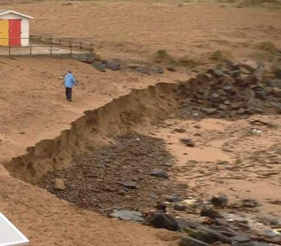 As a result there is currently a 6-7ft drop in the level of the sand at one of the beach access points. Crews from Cormac will be monitoring the situation and are in the process of putting up signs to warn visitors to take care.