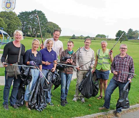Councillors and volunteers pause from their labours at Saturday’s litter-pick in Coronation Park. Picture: Paul Hamlyn