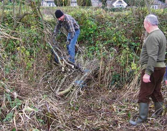 Willows were cut and trimmed before being bound into bundles ready to be transported to Widemouth Bay where they will be used to stabilise another uncommon habitat, the dune system.