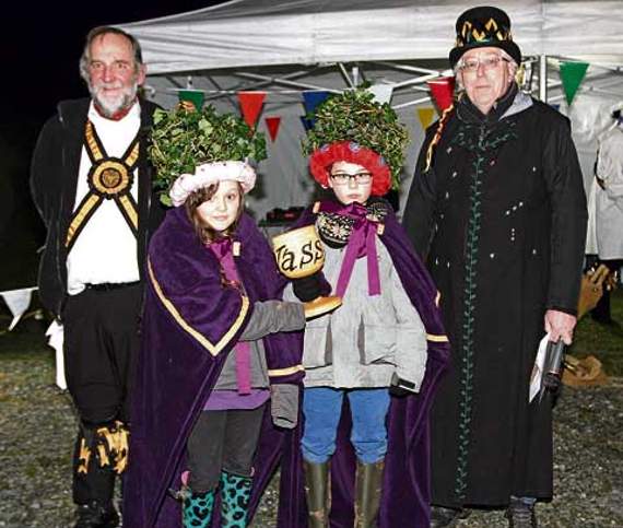 “Our wassail queen and king, Tegan and Joseph, did a fantastic job of leading the procession, pouring the cider round the tree and then hanging the first cider dipped toast in the tree.”