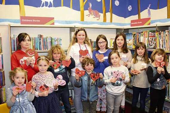 Children listened to stories, made badges and hearts for a ‘We love libraries’ display.