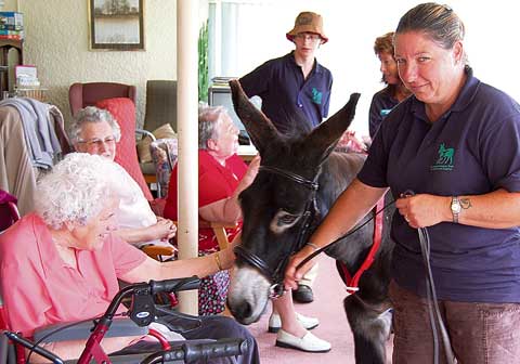 Merlin the donkey, from the Elisabeth Svendsen Trust (EST), Ivybridge paid a visit to his friends at the Winsford Lunch Club recently.
