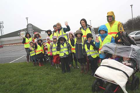 The Wednesday Walking Bus was set up a couple of months ago by the school's sustainable travel co-ordinator Becky Rowland, and it is proving more and more popular with both parents and children. Parent volunteers walk the children to and from school in a long 'bus' line. There is a parent driver at the front and conductor at the back, and one or two adults in the middle leading the singing!