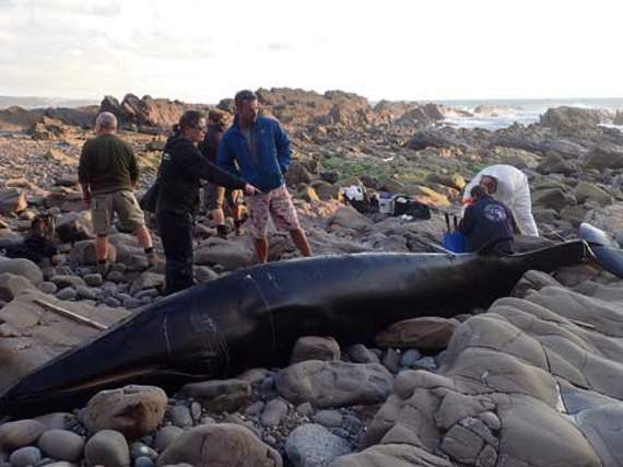 Niki Clear, the data officer for the Marine Strandings Network, said: “External injuries and congested lungs confirm the whale had lived stranded on the rocks and died as a result.