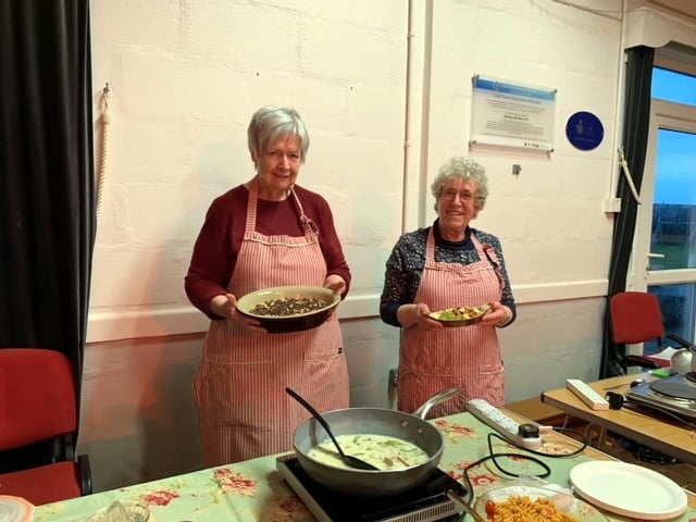 Alison used more traditional ingredients and Pat used ingredients that have appeared on the shelves in more recent times. Both cooks managed to magically produce a three course meal in an hour and a very appreciative audience of nearly fifty WI members from the north and east of the county were invited to sample the results.