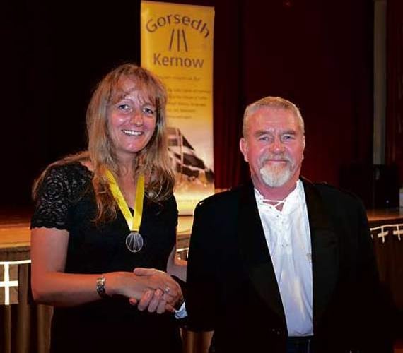 Among local winners was Helen Bartrop Hocking, from Bude, who received the Gorsedh Kernow medal for a song in English — ‘One and All’, which she made as part of the band tigerBalm with her husband Martin.