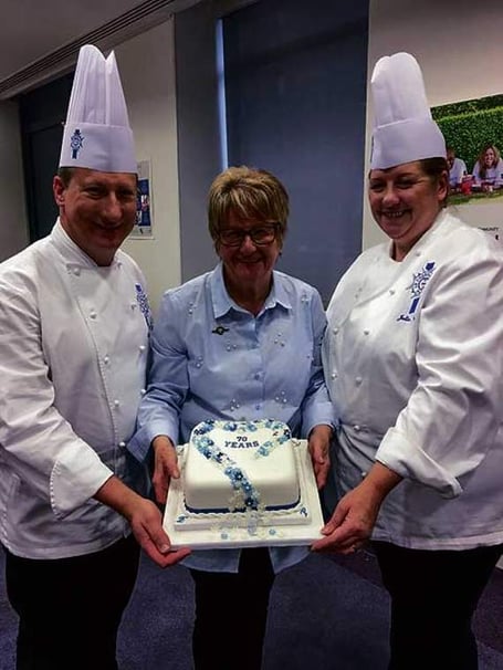 Shortly after the announcement, Women’s Section Chairman Pat Chrimes accompanied Trudi and the cake to the Royal kitchen. The cake design includes a horseshoe to represent The Queen’s interest in horses and an anchor for Prince Philip’s affiliation with The Royal Navy.