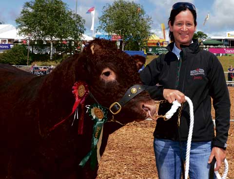 JENNY Ellacott, of Ashwater, is pictured with Halwill Troy Warrior, aged 13 months, who came second in the Junior Bull class. He also won Reserve Special. Picture: Adrian Jasper