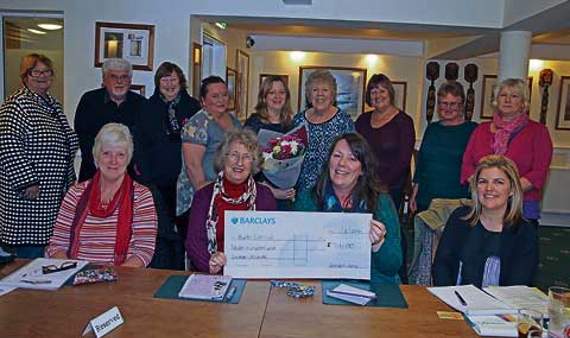 A wine and wisdom evening at the Brendon Arms in Bude on Janaury 27 raised £716 for Bude Carnival. Pictured are committee members with a cheque and a bouquet of flowers, presented by Margaret Frost on behalf of the committee as a thank you for the use of the Brendon Arms. Special thanks were also expressed Sarah Jose for organising, Sharron Brown as quiz writer and Guy as quiz master, plus everyone else who helped to make the night such a success.