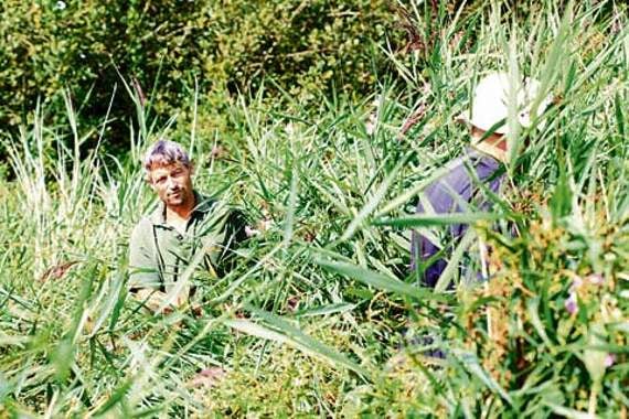 The surrounding reed beds have been penetrated by invasive aliens — Himalayan Balsam. Last year, volunteers removed many of these plants but failed to clear the area.