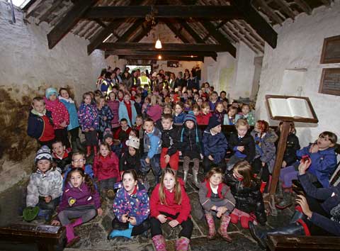 Travelling by coach, and on foot through Halgabron Woods, children from Delabole and Tintagel Primary Schools retraced what could have been the footsteps of St Piran himself.