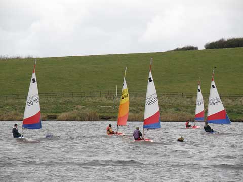 There were five Toppers (all having a double reef to keep the fleet the same), and two Bosuns. The seven helms and two crew were all brave enough to face the biting north westerly winds, and it was a tight start.