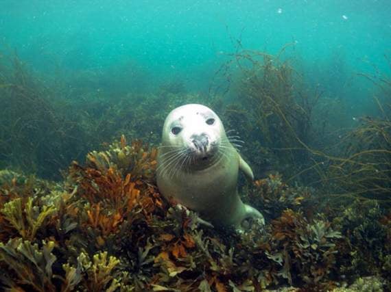 I felt a tug on my fins and I turned around to see what the ladies wanted, to be met with the biggest seal face ever, grinning at me as if to say ‘Who? Me?’.