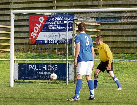 Paul Osbourne's hat-trick dismantled a valiant Camelford in this cup quarter-final of two halves.