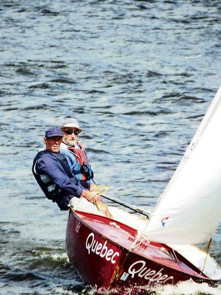 TOBY Tobias and John Dabbs battle the breeze at Upper Tamar Lake.